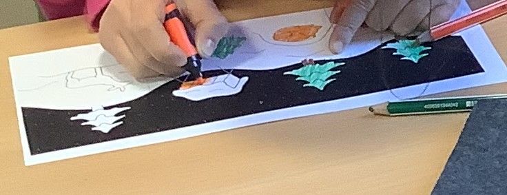 Anschließend gab es für die Kinder die Möglichkeit Kerzen zu färben und Farbbilder zu gestalten.
