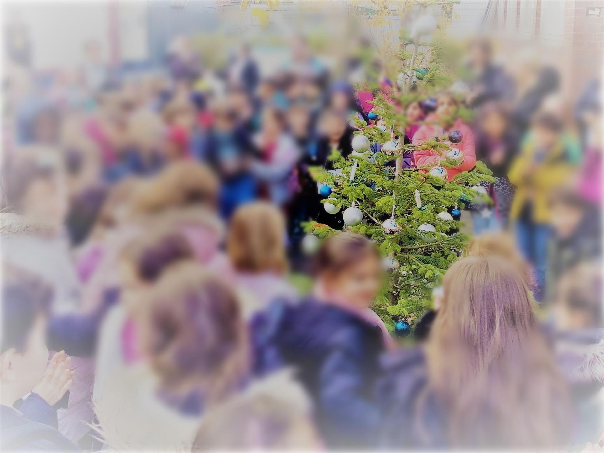 Gemeinsam schmückten wir unsere Schule sowie unseren mitwachsenden Weihnachtsbaum.